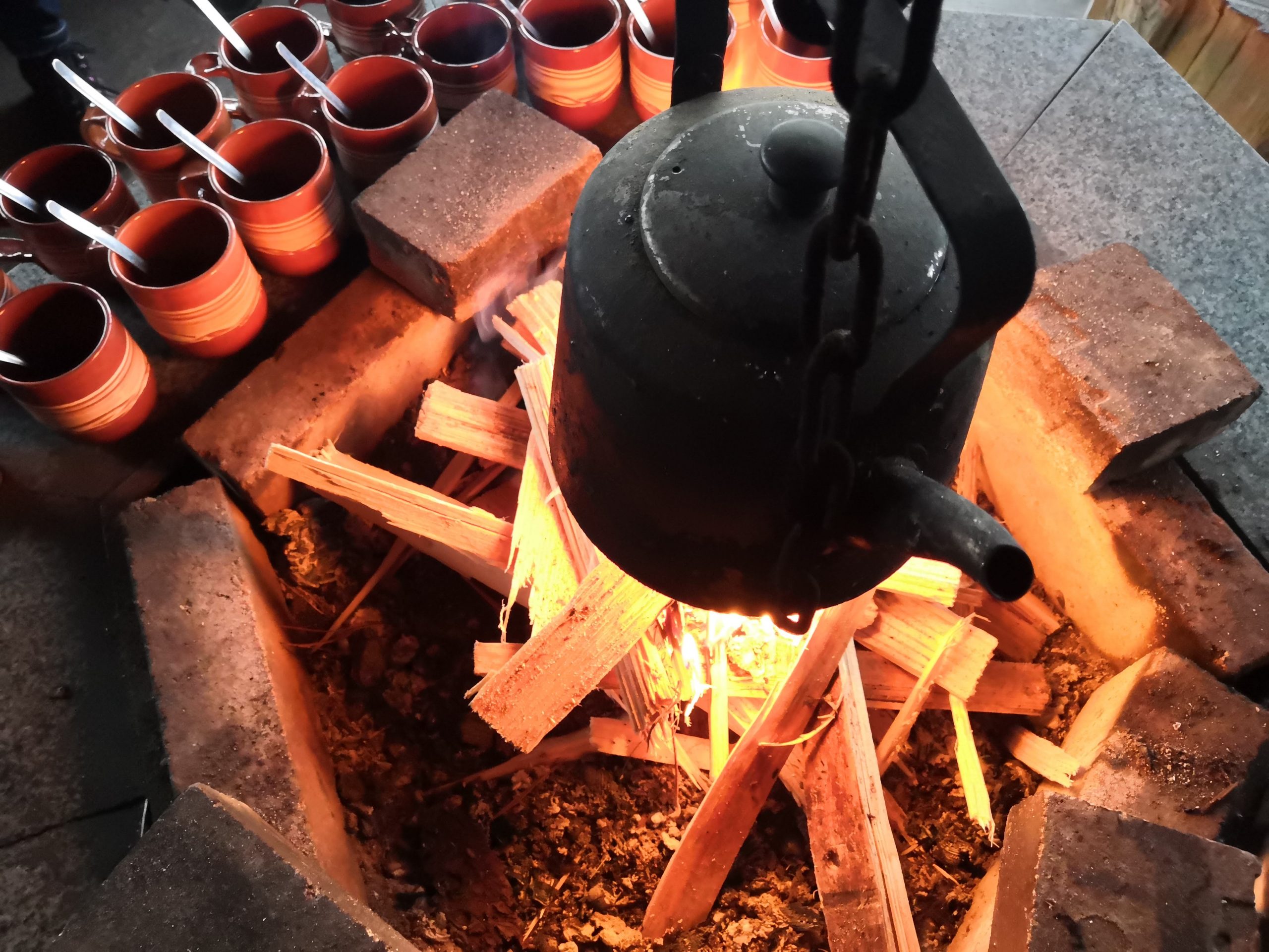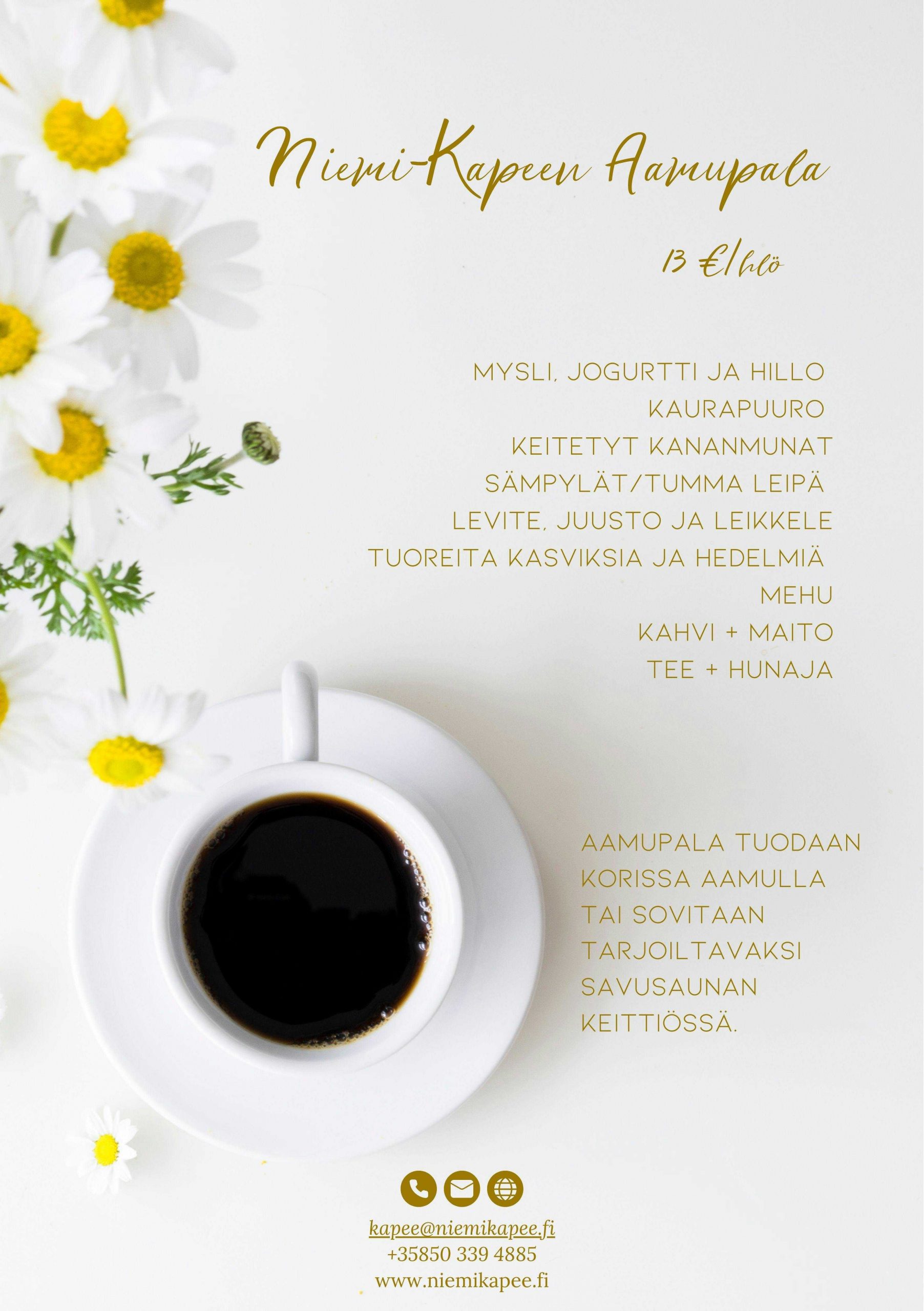 Niemi-Kapeen Aamupala tarjoillaan ryhmille ja aittamajoittujille Savusaunarakennuksella.